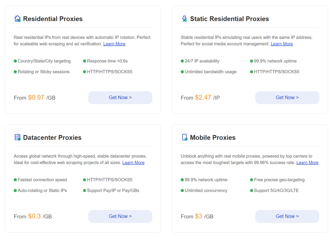 ![]() 100+ Application Scenarios ✅ Maximize your online success in Web Scraping, SEO, Social Media, E-commerce, Gaming, Ad Verification, Web3 Farming, and MORE! ✅ Tailored solutions to mimic REAL user network activity for authentic engagement ✅ In HIGH Demand for Amazon, Instagram, TikTok, and Growtopia! Start Today! Enjoy a 1 GB FREE TEST & 7-day FREE TRIAL to experience the benefits firsthand! CLAIM YOUR TRIAL NOW!!! ![]() Exceptional Value at Competitive Prices!