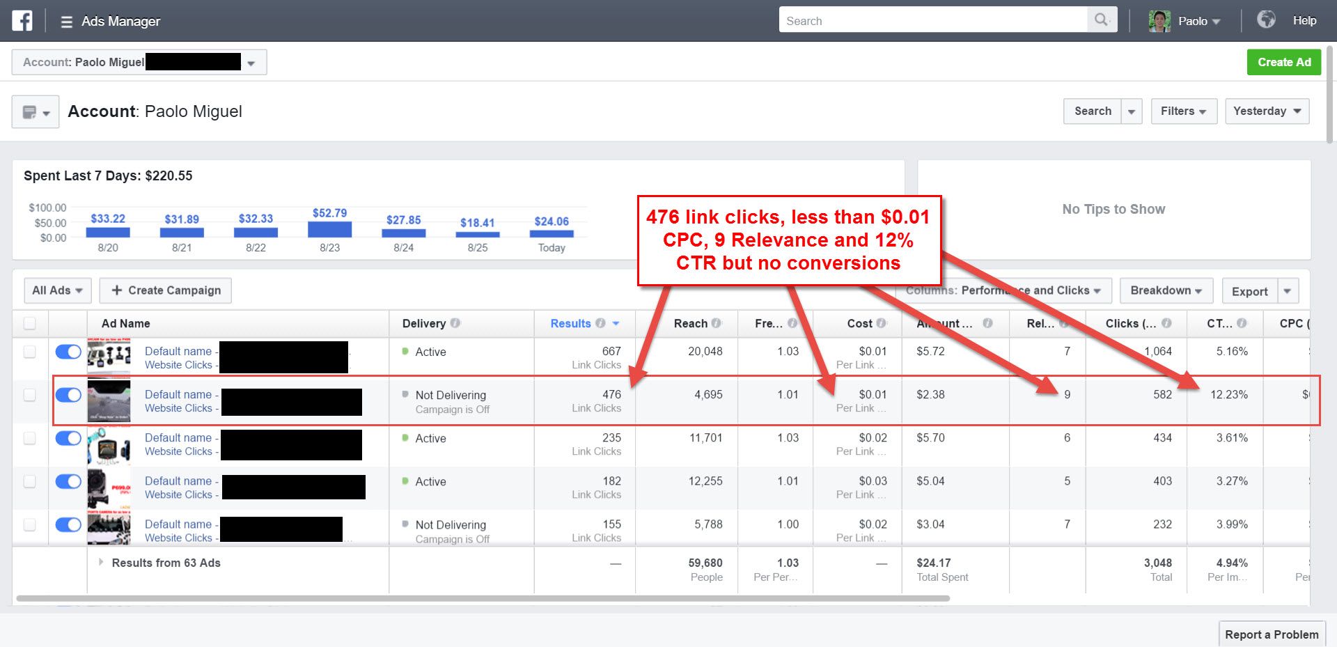 Less than 0.01 CPC and More than 12% CTR on Facebook Ads but NO Conversions