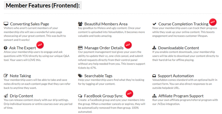 | How Will Value Addon Help You Make Money Online? Read Our Complete Review with Our Fast Action Bonuses Save 65% + During This Special Launch! ![]() If you're ready to invest in Value Addon, then click here. If not, read on for our review and bonus package Value Addon is a new membership platform from Joshua Writer and is being backed by JvZoo as their new endorsed platform. The real benefit is the fact that you can setup a membership site in just a few minutes- even if you're completely new and have no clue where to start. If you've used any of the membership scripts in the past such as Wishlist, DAP, Kajabi, or Amember - then you know you've got to integrate with several other platforms - making it a skeleton type setup. And can take setting up your membership site a long time. With Value Addon, it's completely different- you've got a built in merchant and it integrates with your autoresponder service. You can have a complete membership site ready to go in minutes! Value Addon Features ![]() ![]() ![]() ![]() And the coolest part is... Value Addon Integrates with Facebook Groups! There's never been a membership tool that will allow you to integrate with Facebook groups - now it's possible thanks to Value Addon. The thing is - this takes membership platforms to another level with new features and eliminating the frustrations and guesswork. It's super easy to use. And fast to start selling which is where your focus needs to be - it doesn't need to be on the technology or tinkering with scripts. See how it stacks up against the competition ![]() Value Addon Bonus Package When you order Value Addon from our link, you'll receive the following bonus package Bonus # 1 - Email Marketing Mastery This is a 6 week training program that I held where we go through everything you need to know to become a master at driving the most reliable traffic on the internet - email. Imagine not being subject to Google or Facebook updates - but simply being able to press send and make money. This will show you how. Bonus # 2 - $6K in 7 Days This is a case study of how to generate $6K in 7 days with affiliate marketing using email traffic only. You'll get all the swipes from this campaign. Bonus # 3 - How to Use Video to Grab Free Traffic In this training, I'll show you how I'm using Video Marketing to drive laser targeted Free traffic by tapping the search results with simple, ghetto videos that anyone can create. How to claim your bonus package