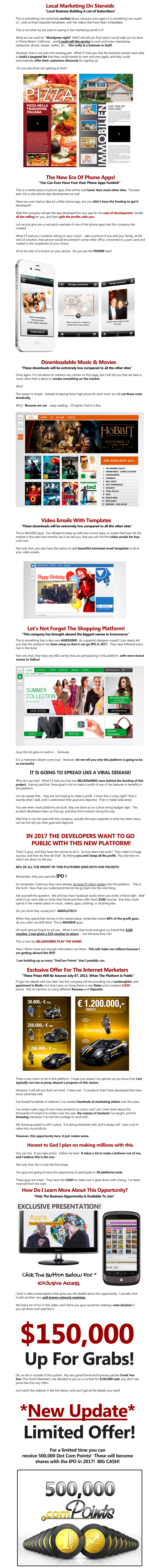 | Re: New Social Media Platform - 15 Billion IPO, 80% Profit, Autoresponders, Webinars, Video Emails..