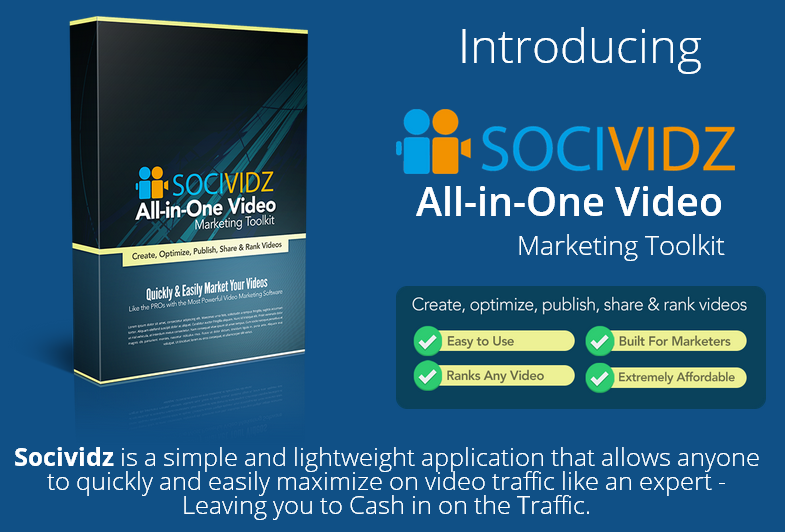 Blog Entries: 1 | SociVidz Review With HUGE BONUS & DISCOUNT - The Most POWERFUL All-In-One Video Marketing Software. Socividz Review - Quickly & Easily Market Your Videos Like the PROs with the Most Powerful Video Marketing Software What is “SociVidz” ? SociVidz is a Video Creation and marketing software that will Create videos, optimize them, Publish, Share and Rank them to get users real results. With the 1 click users can upload thier video to multiple video sites and get social media embeds and links from High Authority social media sites. The software gives users the ability to create both Batch and single videos using a video timeline along with the ability to edit, optimize and manipulate already created videos. The software is an all in one video creation and marketing tool unlike anything on the market today that will allow you to give any video the best possible chance of going viral. SociVidz comes with features to increase youtube views, channel subscribers, video likes and comments. It also allows it's users to perform video research, video competition analyses and keyword research from within the 1 dashboard. ![]() So, How It Works Actually ??