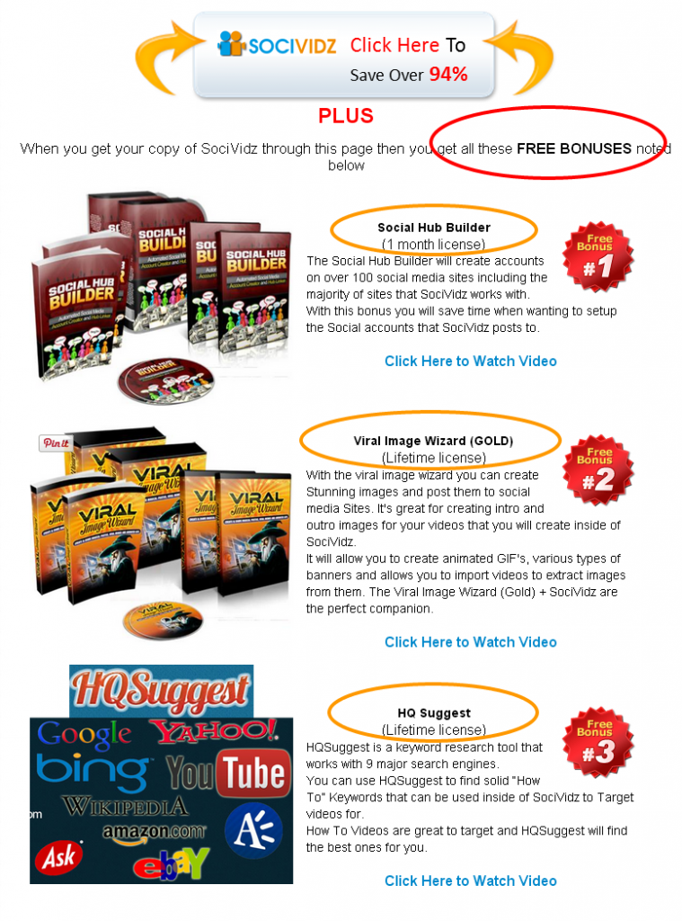 Reason For Buying SociVidz.. Well, the factors that make this software unique is that this not only helps you in creating an amazing video, but also let you to market and go for viral sharing of your video to all the leading video sharing and social media sites for yielding better conversions from your videos. Until now, whatever softwares were launched all lets you to either create a video or market a video for better rankings, but compare to all these SociVidz is truly a unique software that both let you to create and market your video straight from within the software itself. ![]() Time to Take Action Now... Well, it is simply now your turn to accelerate your online income to its next level from video marketing itself with the premier video creation and marketing software SociVidz. Users can simply boost-up the engagement on Any YouTube Video by fetching them all real likes, real comments, real views, and real channel subscribers. Last nor the least you can get this premier software for the Early Bird Discounted Price Tag of just $27, you can hardly get any better option than this. So take action now without wasting time and boost up your video marketing to its next level. To Claim Your Bonus Pack You Can Follow Below Options.... Option 1: Mail me your Paypal Transaction ID and DealGuardian Transaction ID after purchase through my link. This is my email: info(at)heygetmysecretformula(Dot)com Option 2: PM me in the Warrior Forum with your Paypal Transaction ID and DealGuardian Transaction ID after purchase through my link. You Can Follow Any One Of The Options Above To Claim Your Bonus Pack. You'll Get Your Bonus Pack Within 24 Hours. Affiliate Disclosure : I am advertising this as an affiliate here. I am not the product owner or the Creator of the Product listed on this Thread and I will get a commission from the product owner if you buy through my affiliate link advertised here. All support done by the product owner. JBL |