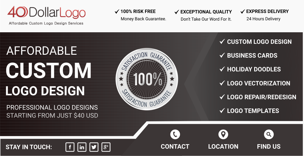 40DollarLogo provides custom logo design services starting at just $40 USD. We have delivered custom designed logos to over 6000 startups and small businesses globally. Read the customer testimonials here. All logo design packages include the following.